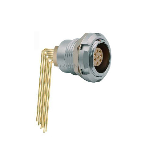 Fixed socket with two nuts, Elbow (90°) contact for printed circuit (back panel mounting)