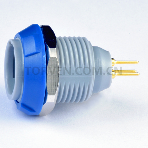 Fixed Receptacle with two nuts, PCB 180° Blue