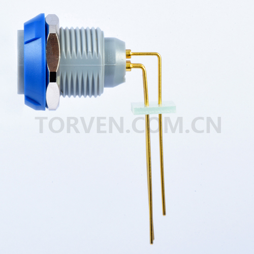 Fixed Receptacle with two nuts, PCB 90° Blue nut