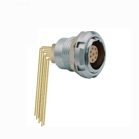 Fixed socket with two nuts, Elbow (90°) contact for printed circuit (back panel mounting)